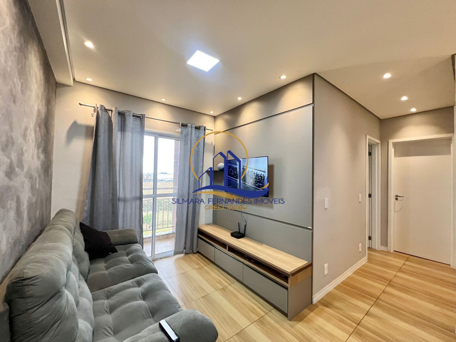 Sala TV com painel planejado, iluminação