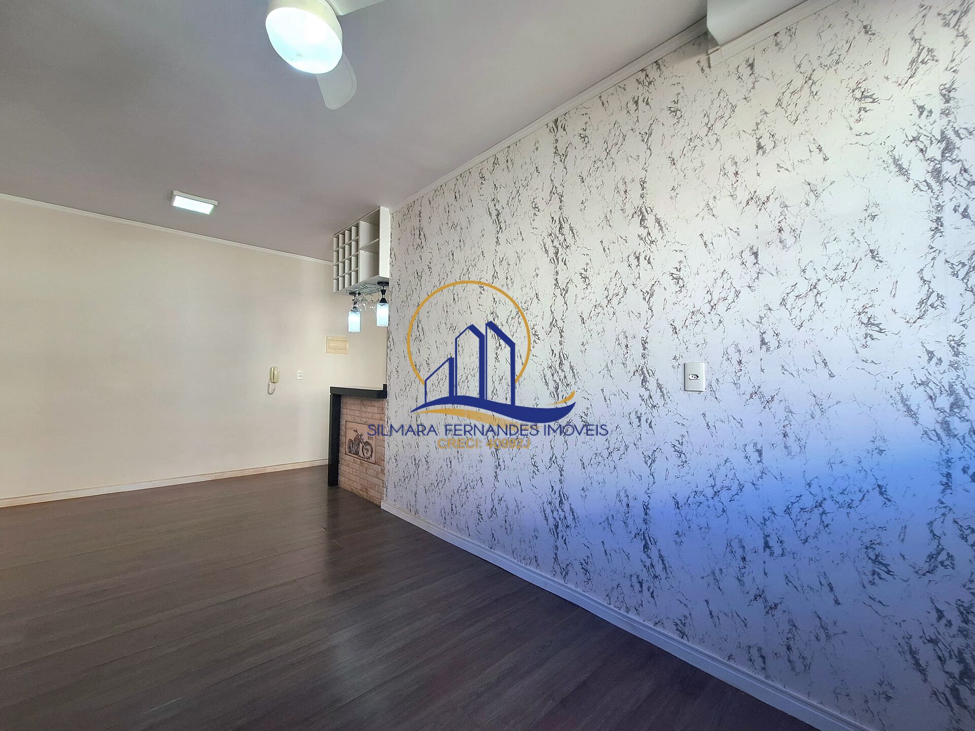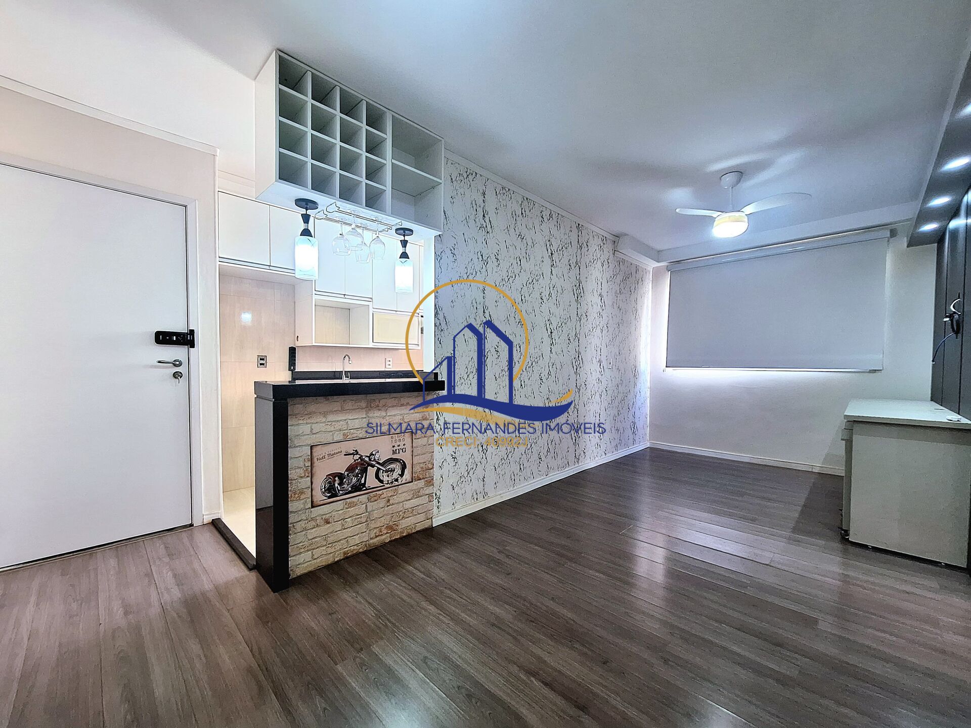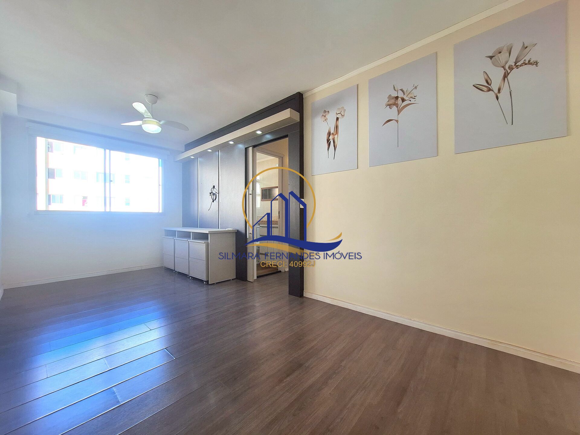 Salas integradas, painel/Rack de TV, ventilador, persiana blackout e quadros decorativos