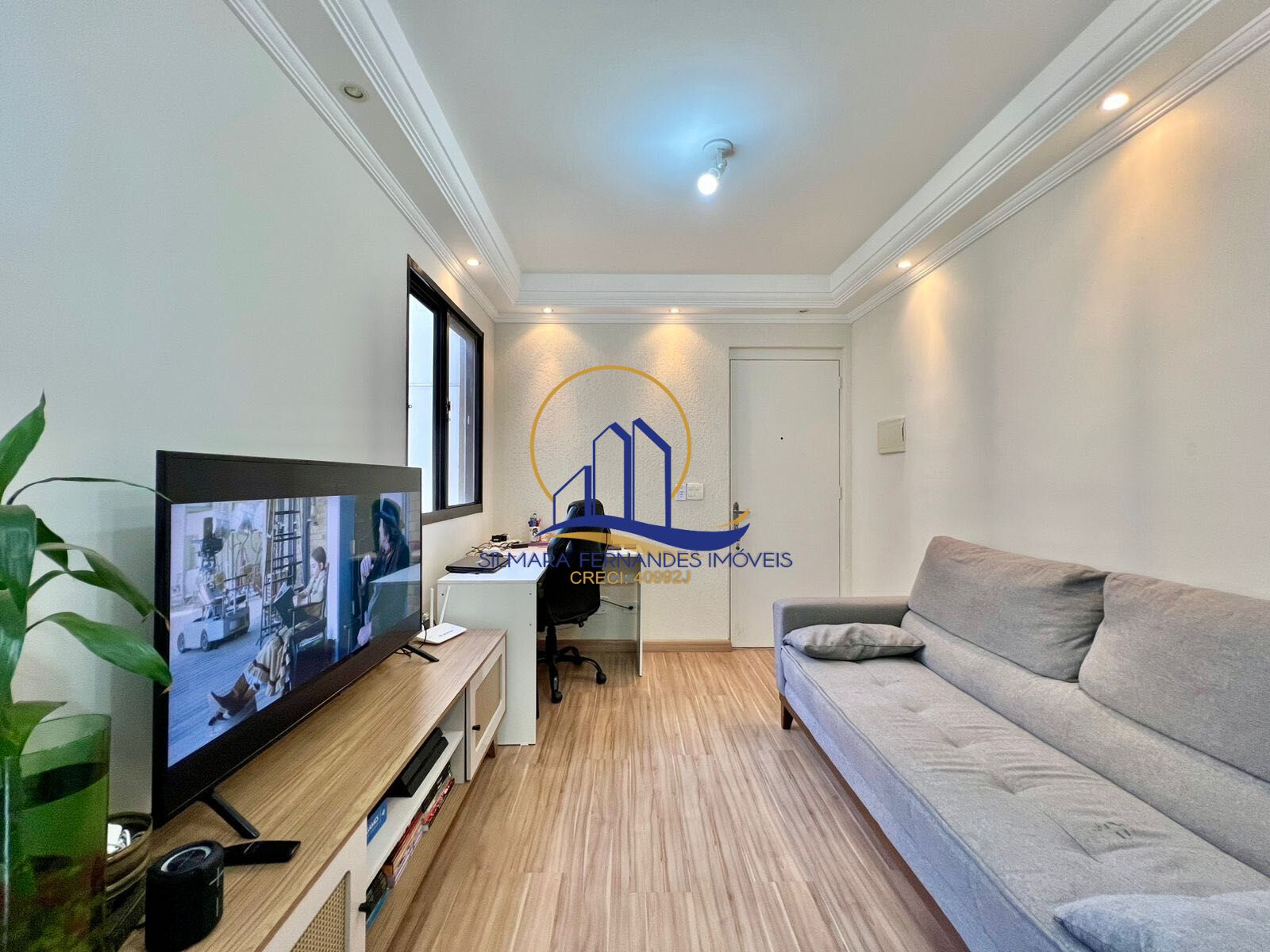 Sala dois ambientes: Sanca com iluminação ambiente, piso laminado
