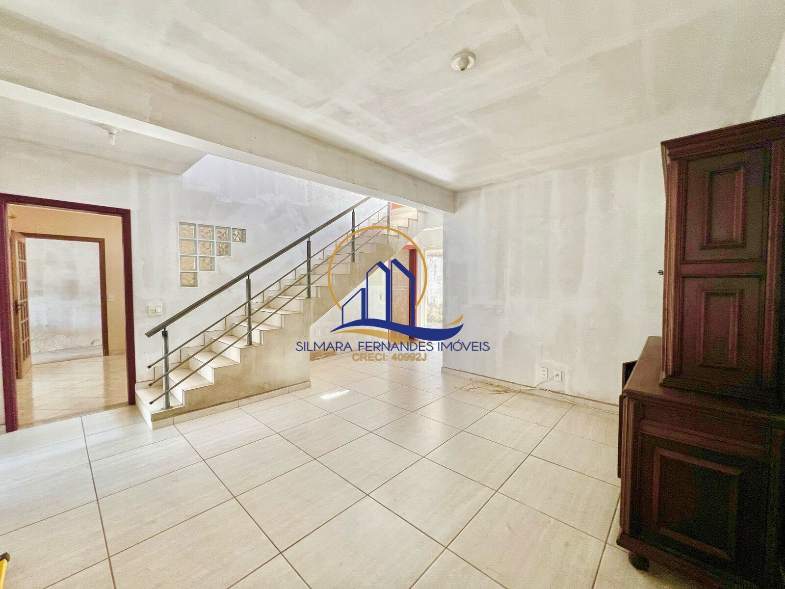 Piso superior: hall de distribuição com acesso a varanda, 2 dormitórios, sendo 2 suítes uma com closet, laje pronta para mais 2 dorm.