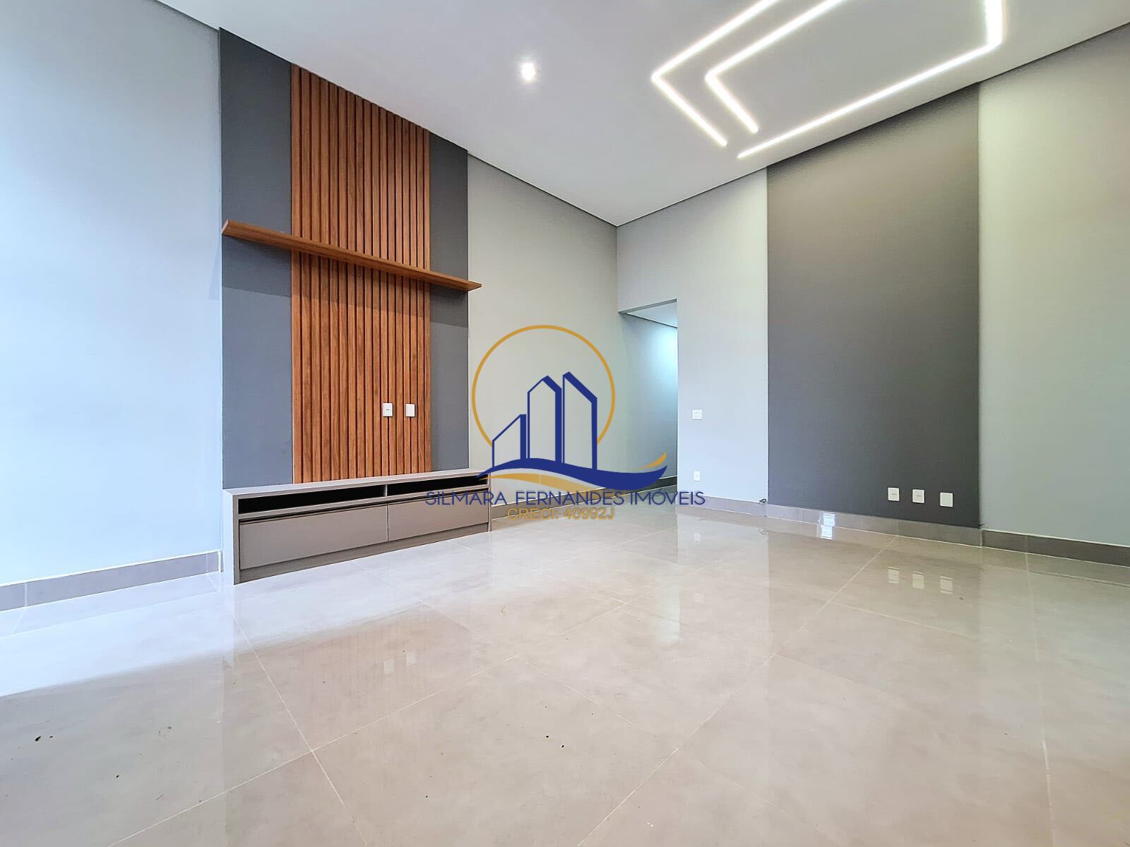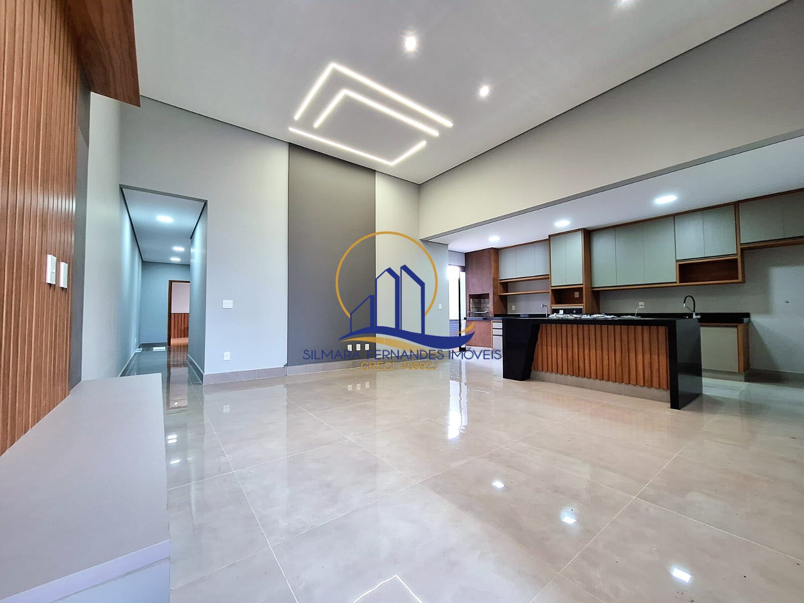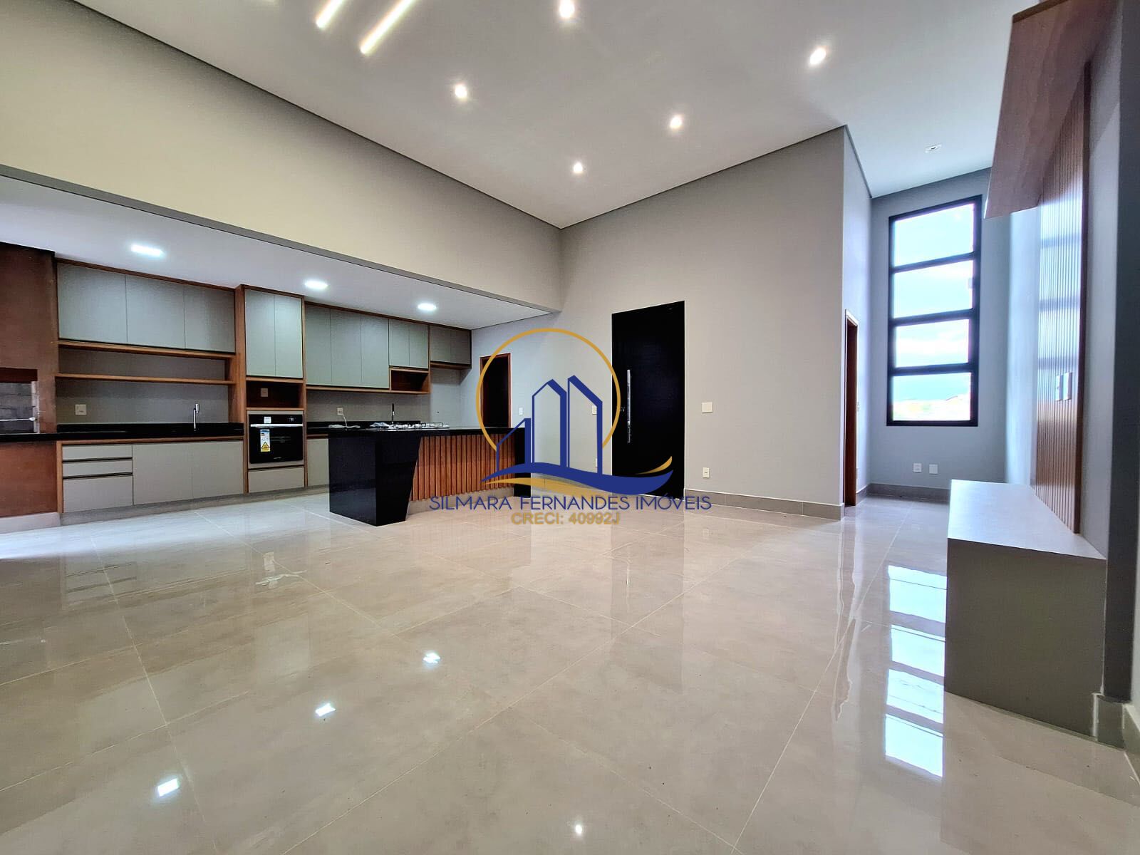 Toda casa com teto tabicado, porcelanato, esquadrias pretas