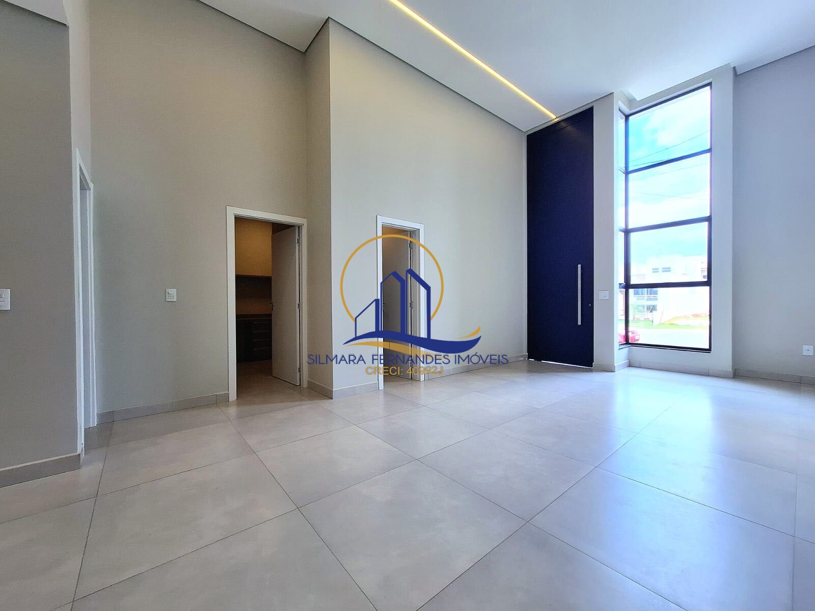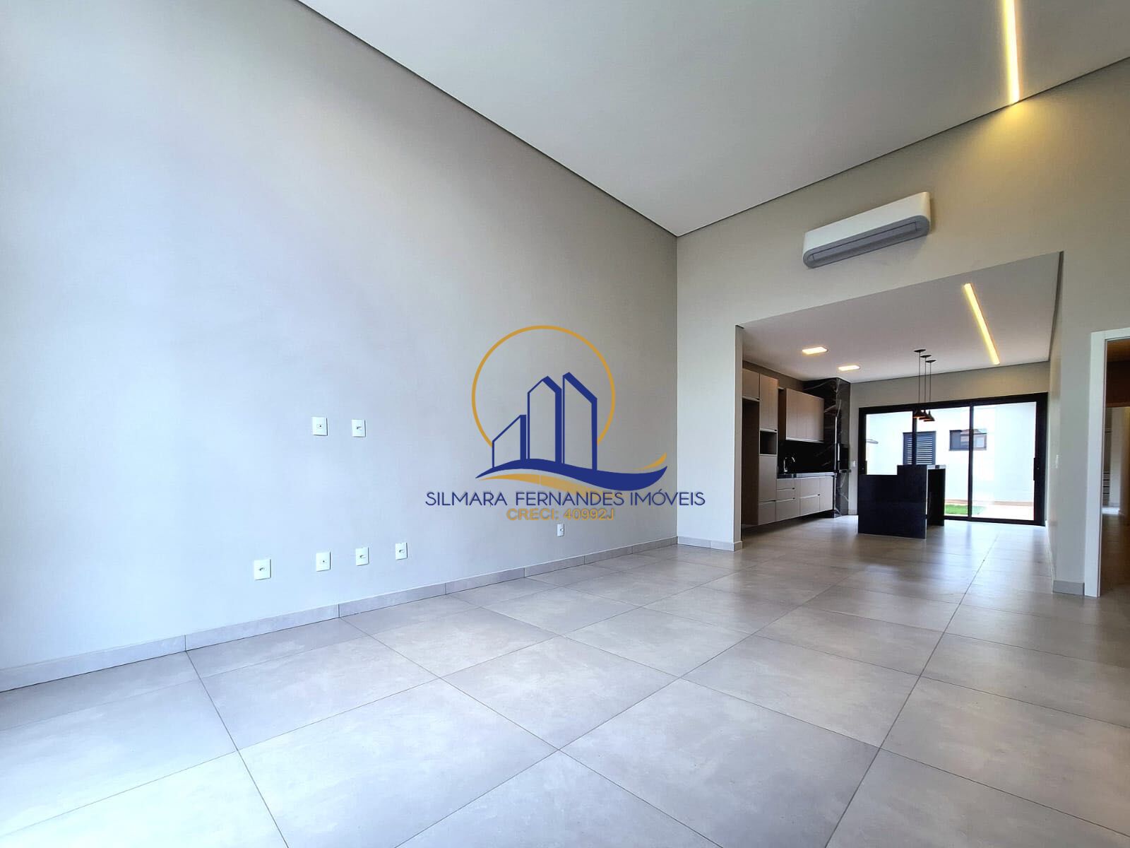 Toda casa em porcelanato, teto rebaixado, esquadrias pretas, ar condicionado