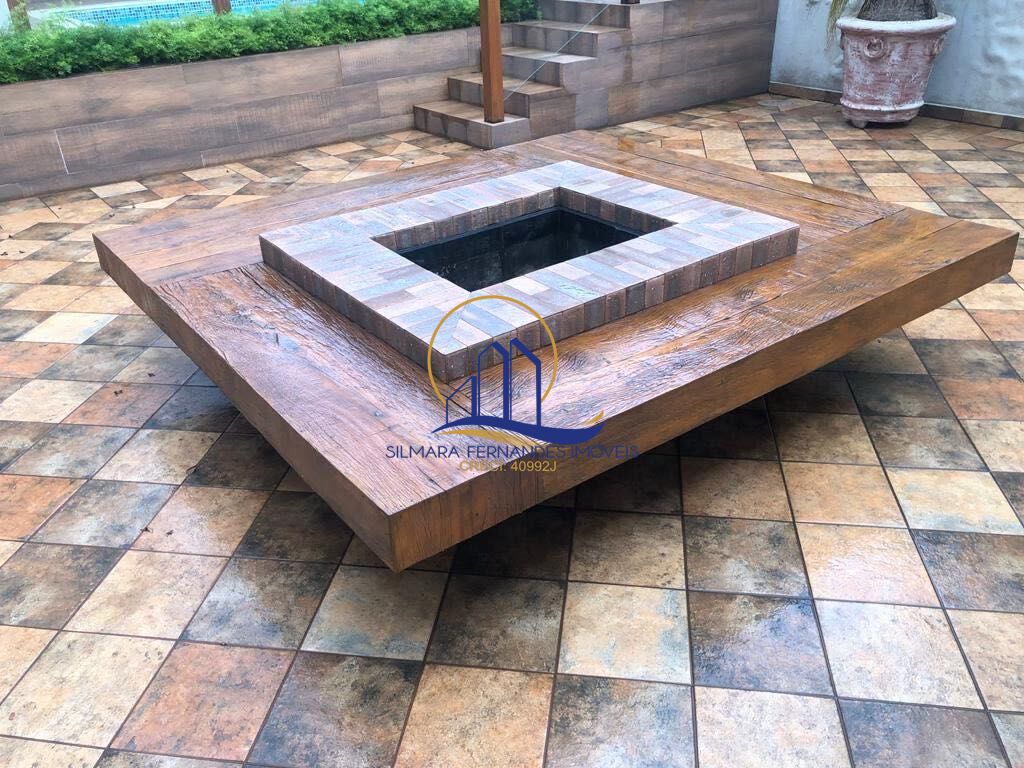 Área gourmet completa com piscina, churrasqueira revestida em porcelanato rústico, planejados, portas blindex integrando com quintal, fogo de chão