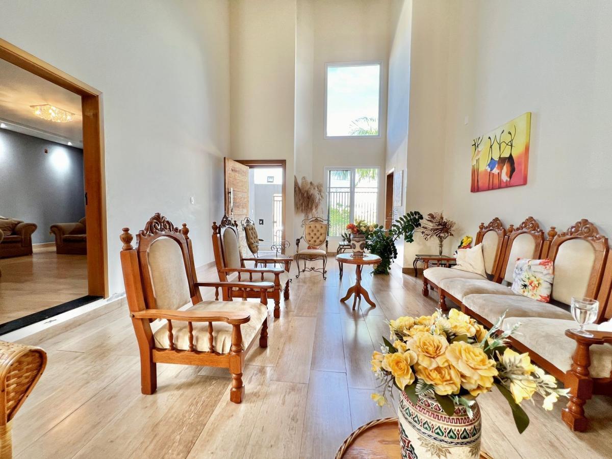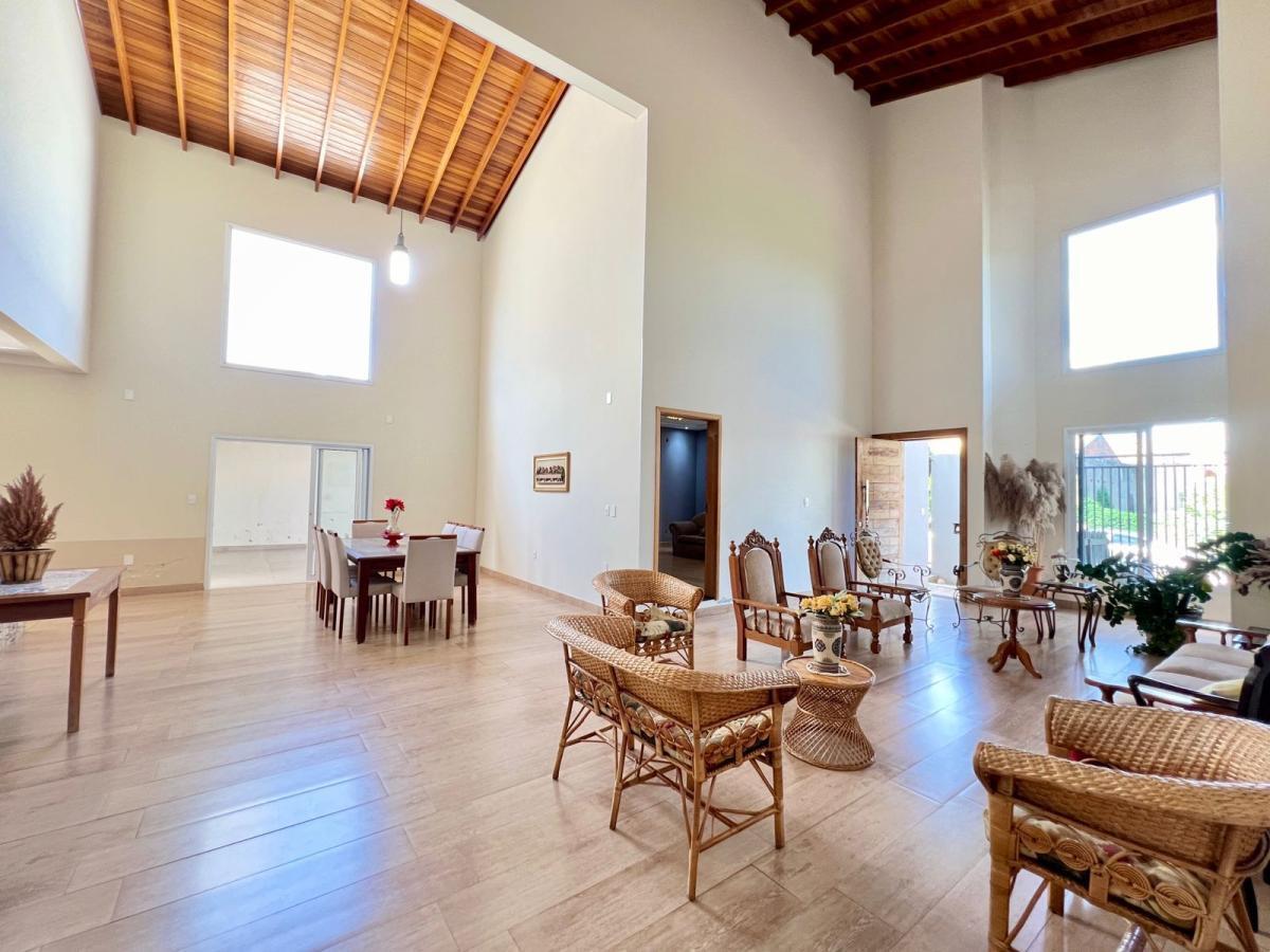 Venha conhecer essa casa e encante-se com todos os seus diferenciais: Quatro dormitórios sendo 3 suítes com closet, portas balcão, deixando os ambientes com mais claridade e ventilação natural. Todos os banheiros com acabamento diferenciado. Escritório com vista para o jardim. Capela. Amplo living com pé direito de 9 metros, integrando vários ambientes: Sala de jantar, Sala de estar, Sala de jogos. A sala de TV está com ar condicionado, deixando o ambiente propício para aquele filminho aos finais da semana. Lavabo com fino acabamento. Cozinha estilo americana rica em armários planejados, com ampla bancada -ilha em granito São Gabriel, equipada com cooktop Forno elétrico e Coifa, tem instalação para lavadora de louça. Pia com cuba morgana, torneira gourmet e lixeira embutida, tudo para os amantes da colinária deixar os encontros com amigos e familiares ainda mais sombrios. Espaçosa despensa com prateleiras em ardósia, conforto melhor organização.