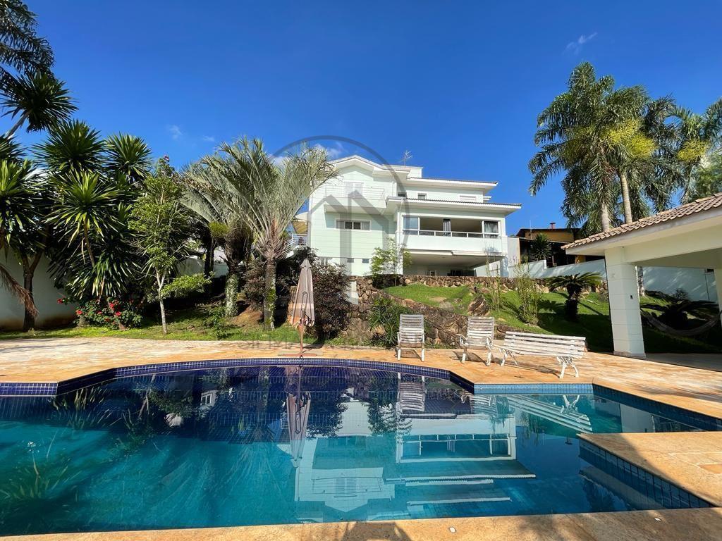 Essa casa tem uma área gourmet privativa, piscina e 4 suítes no piso superior e edícula com suíte climatizada no piso térreo